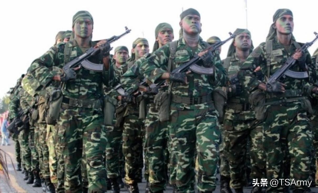 马尔代夫军队成立于2006年,军队一直采用的都是泰国生产的四色林地迷彩作训服,现如今17年过去了,马尔代夫的陆军依旧在用这套作训服。