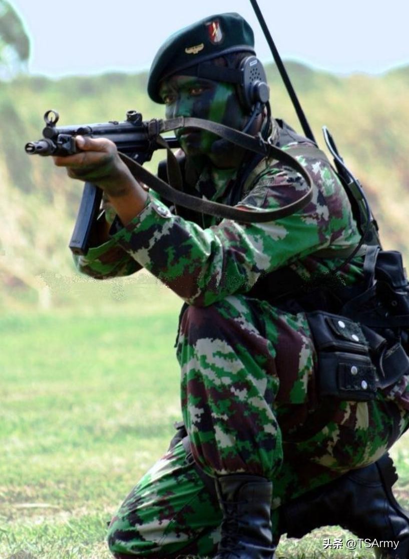 上图中就是一名印尼陆军士兵,身穿的就是2003年推出的丛林数码迷彩作训服。