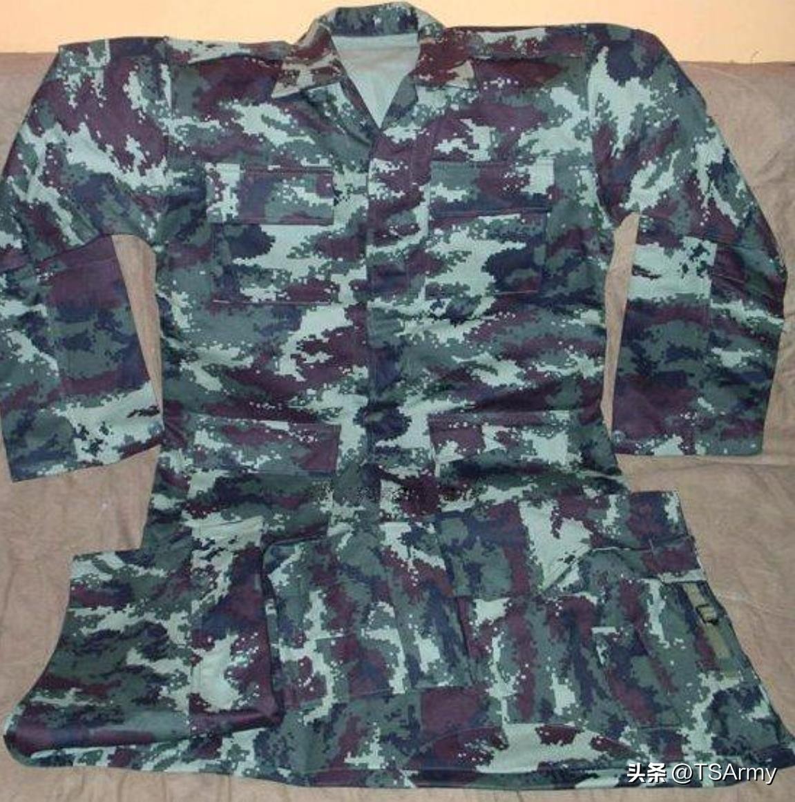 中国装备迷彩服的时间较晚,第一款迷彩作训服在八十年代初期问世,叫“81式双面伪装衣”,但主要装备给前线上的侦察兵部队使用,直到九十年代初期,才开始为全军发放87式迷彩作训服。