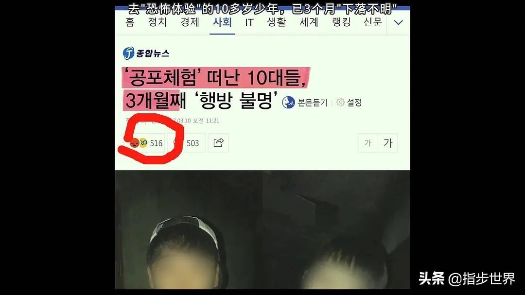 2、片子在标题为《去“恐怖体验”的10多岁少年,已3个月“下落不明”》的伪造新闻报道页面里,下方显示的赞同人数为“516”,与接下来小标题介绍院长朴令爱是“日本留学派”,该院有“516”张病床的数字雷同。