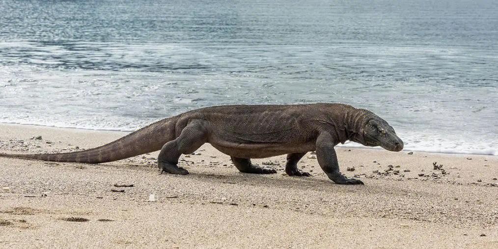 科莫多巨蜥的体型堪比史前巨兽,肌肉贲张,散发着一种不可撼动的力量。