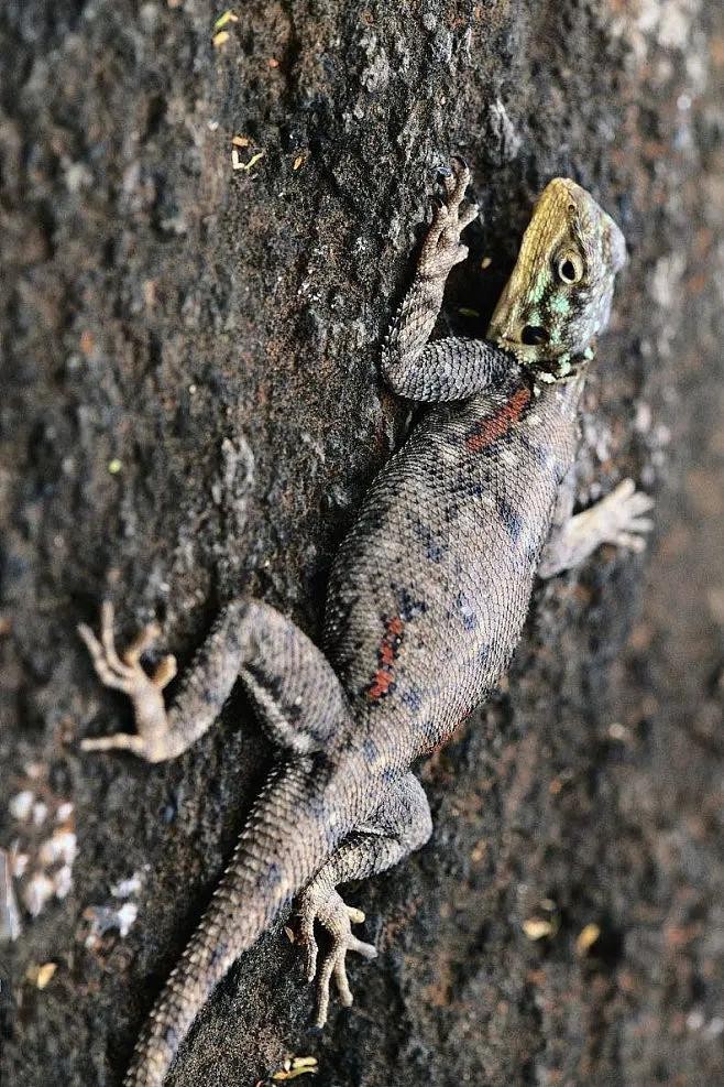 环尾蜥的头颅显得强大而威猛,眼神深邃而沉静,仿佛是在注视着时间的长河。