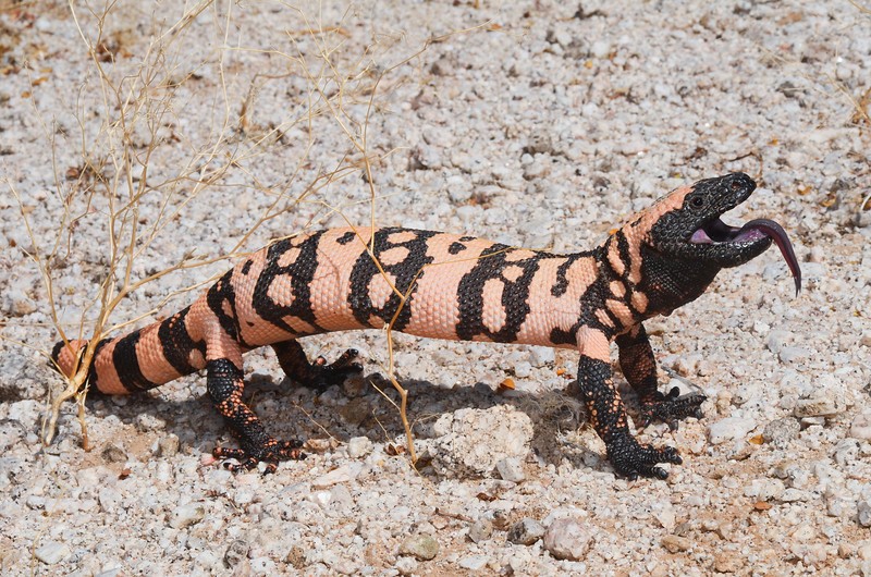 吉拉毒蜥的体型虽小,却富有攻击性和毒性。