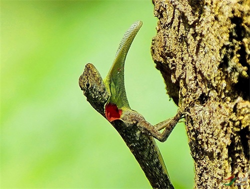 绿鬣蜥,身披翠绿的鳞甲,宛如一道穿越翠绿密林的绿色旋风。