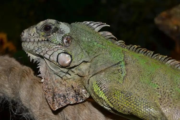 绿鬣蜥的头部狭长而灵巧,眼神灵敏而警觉,时刻关注着四周的一切动静。