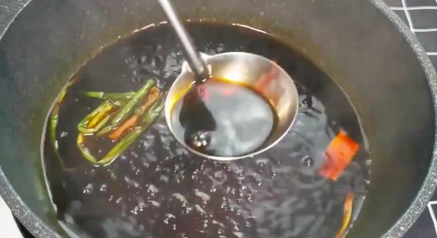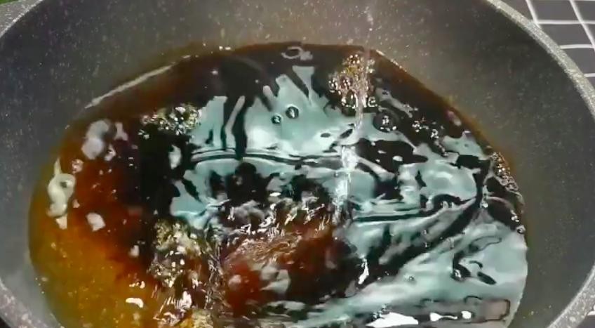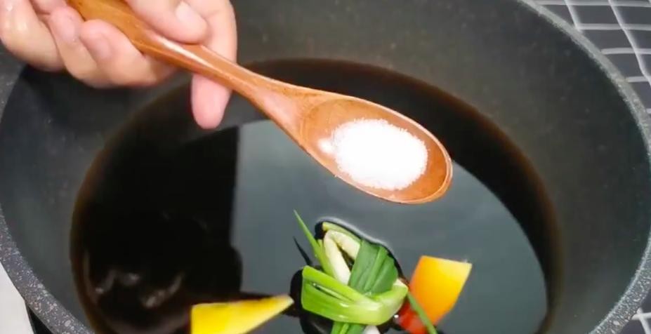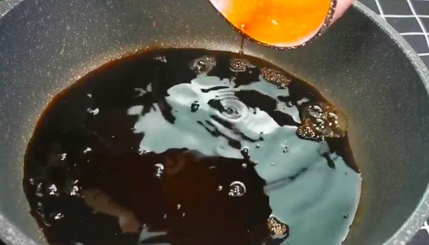 3、蒸鲈鱼期间开始调制料汁,在锅中倒入半碗酱油