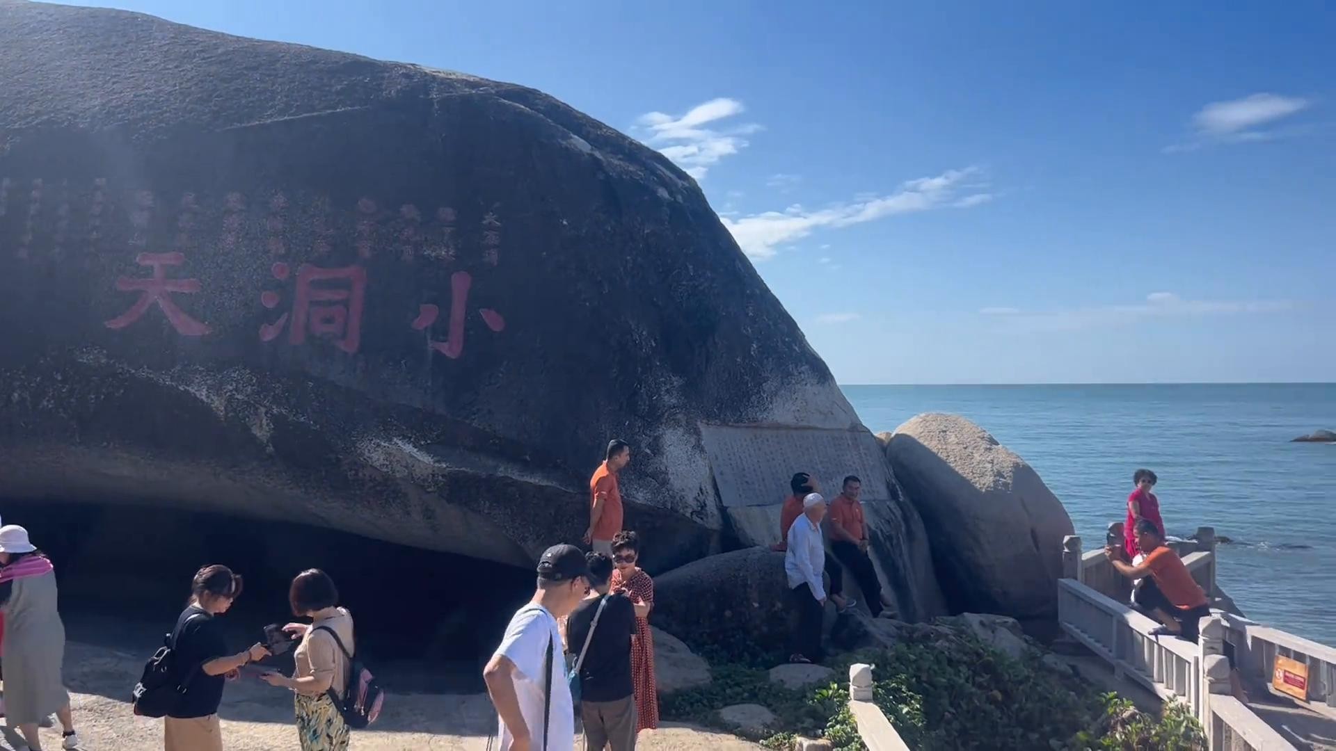 2. 举步迈入这片神奇天地,只见碧海蓝天相映成趣,浩瀚无垠,恰似一幅美轮美奂的巨型画卷在眼前徐徐铺陈开来。信步景区之中,郁郁葱葱的植被如绿色海洋般将人包裹,仿佛踏入了一个与世隔绝的绿色仙境。清新的空气沁人心脾,身心的疲惫与纷扰刹那间消散无踪。在小洞天,游客们欢声笑语,纷纷举起相机,想要把这如梦如幻的美妙时刻永久留存。