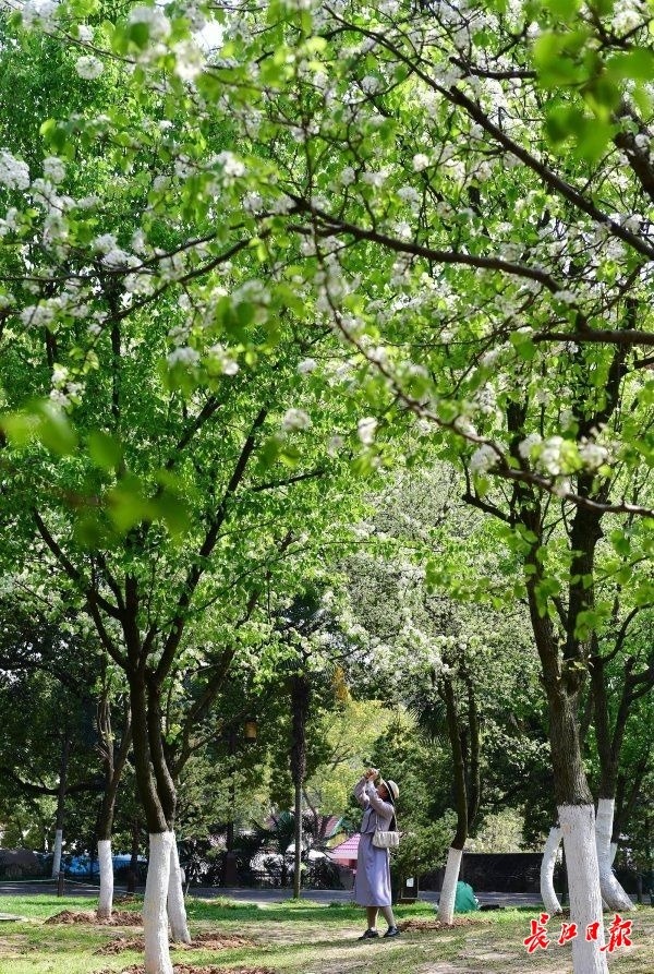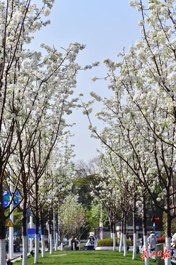 3月15日,武汉市东湖风景区梨园广场,20多株豆梨满树白花,让前来游玩的游客眼前一亮,纷纷驻足观赏。一位女士惊喜地说:“东湖梨园原来真的有梨花。”
