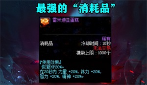 它没有固定的提升幅度,而是以百分比进行加长,+20%四维,这就意味着,如果你进图有1万力智,那么它就会给你带来2千力智提升,如果你有10万力智,它就能带来2万力智提升,上限无穷尽!