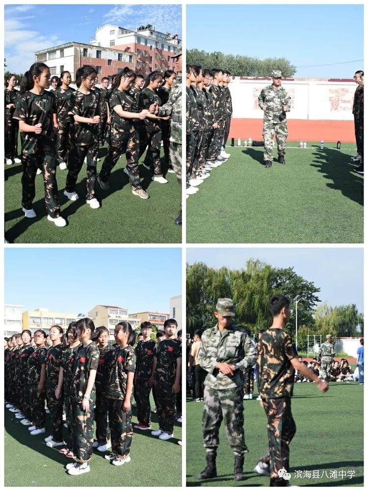 开训仪式结束后,滨海县八滩中学全体高一新生将投入到有序、紧张的军训中。此次军训共5天,内容包括队列训练、三面转法、跑操、内务卫生、军纪训练、应急救助知识培训等。