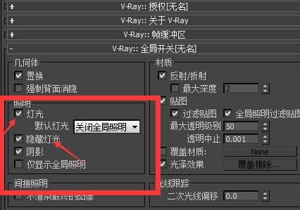 解决方法:把3dmax里的V-Ray全局开关里面的隐藏灯光勾选上。