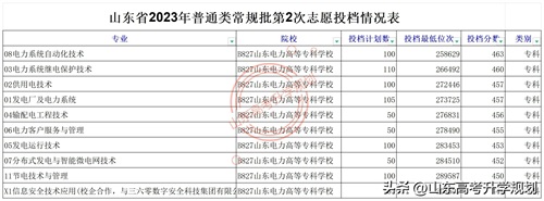 山东电力高等专科学校2022年和2023年各专业录取分数线