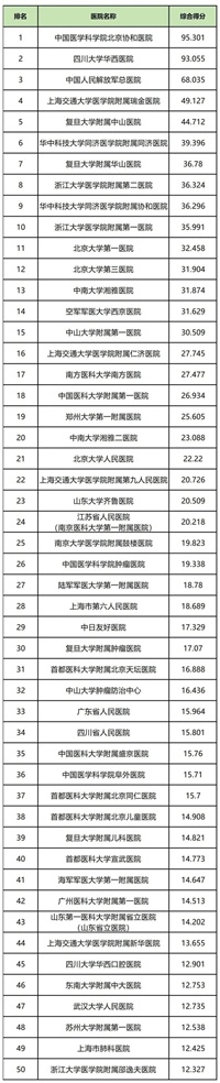 中国医院排行榜是复旦大学医学管理研究所作为独立第三方发起开展的公益项目,涉及45个临床学科,