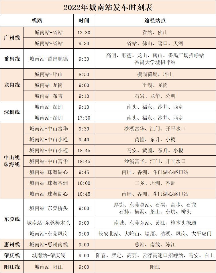 本次发车时刻表开通了广州线、番禺线、龙岗线、深圳线、中山线珠海线、东莞线、惠州线、肇庆线、阳江线,大大便利廉江小伙伴们的出行,大家还不赶快收藏好?