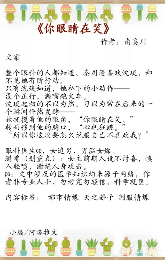 2、《你眼睛在笑》作者:南奚川