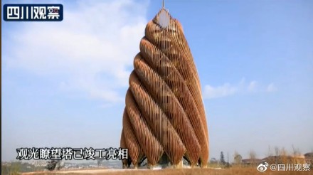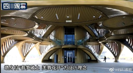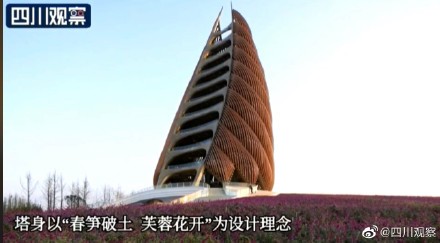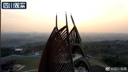 11月24日,四川成都。成都熊猫基地观光瞭望塔竣工,瞭望塔以“春笋破土、芙蓉花开”为设计理念,高69.8米。站在塔上,不仅可以俯瞰熊猫基地全貌,还可以瞭望339电视塔、蜀峰468等成都地标建筑。(DN)
