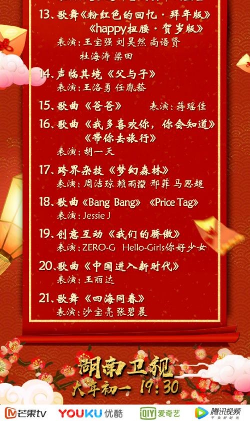2018湖南卫视华人春晚节目单官方版 嘉宾明星阵容名单