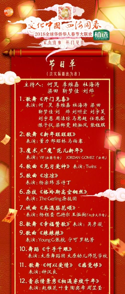 2018湖南卫视华人春晚节目单