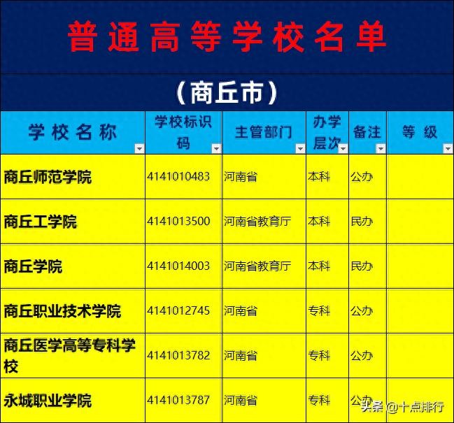 导读:本期内容为2019年商丘市大学名单一览,介绍商丘有哪些大学高校,学校包含本科和专科高校。数据来源2019年公布的高校名单,十点排行整理制表。