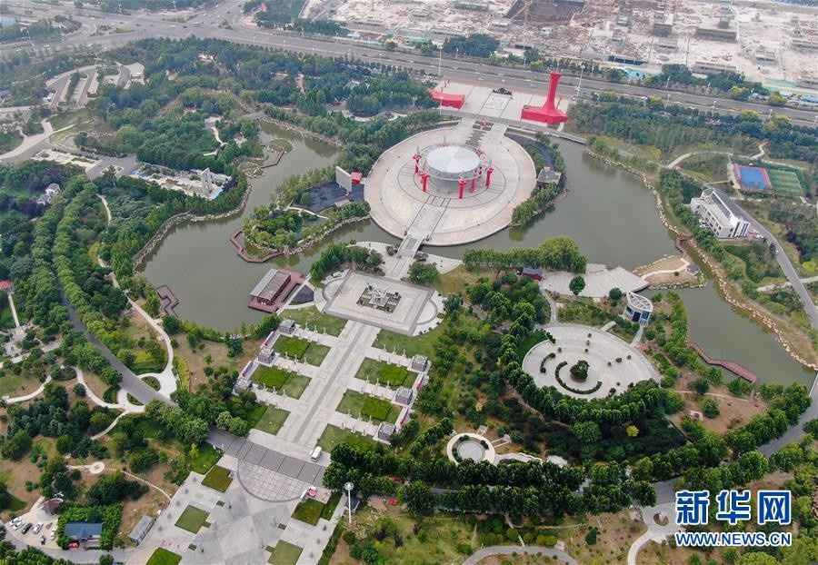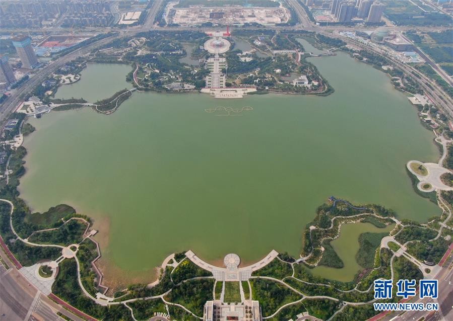 这是7月10日拍摄的日月湖景区(无人机照片)。 日月湖景区位于河南省商丘市,是商丘新区(商丘城乡一体化示范区)水系工程的一部分,承担着灌溉补源、生态观光的功能。景区免费向公众开放,成为夏日里市民休闲的好去处。 新华社记者 郝源 摄