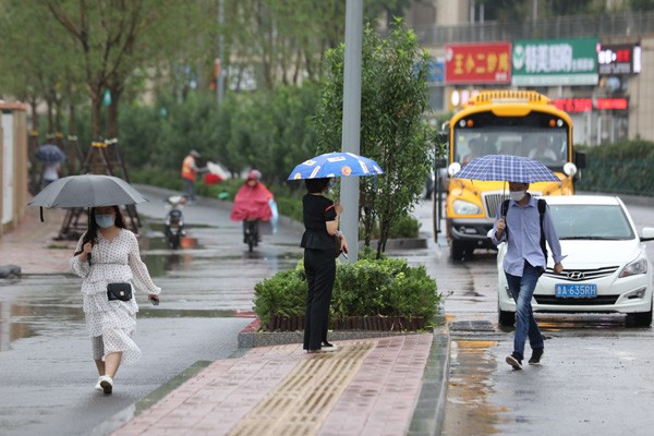入秋以来肆虐多日的“秋老虎”被秋风秋雨取代,在泉城济南,人们穿上长袖外衣,打起雨伞,套上雨衣,行走于沥沥秋雨中。