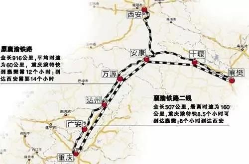 东(北)起焦柳线上的襄阳站出岔向西引出,襄阳北站至老河口东站 段与汉丹铁路共轨。从湖北襄阳市出发经老河口市、谷城县、丹江口市、武当山旅游经济特区、十堰市、郧阳区,进入陕西省;过白河县、旬阳县、安康市、紫阳县,进入四川省,经万源市、宣汉县、达州市、达川区、渠县、广安市、华蓥市,最后进入重庆市。襄渝线是继宝成线、川黔线、成昆线后第四条出入四川省及重庆市的通道,特别是由中原入川,为加强川东地区、重庆市与湖北等省的联系起到了很大的推动作用。襄渝线贯通了达成线,达万线。是东进四川,重庆的重要道路。