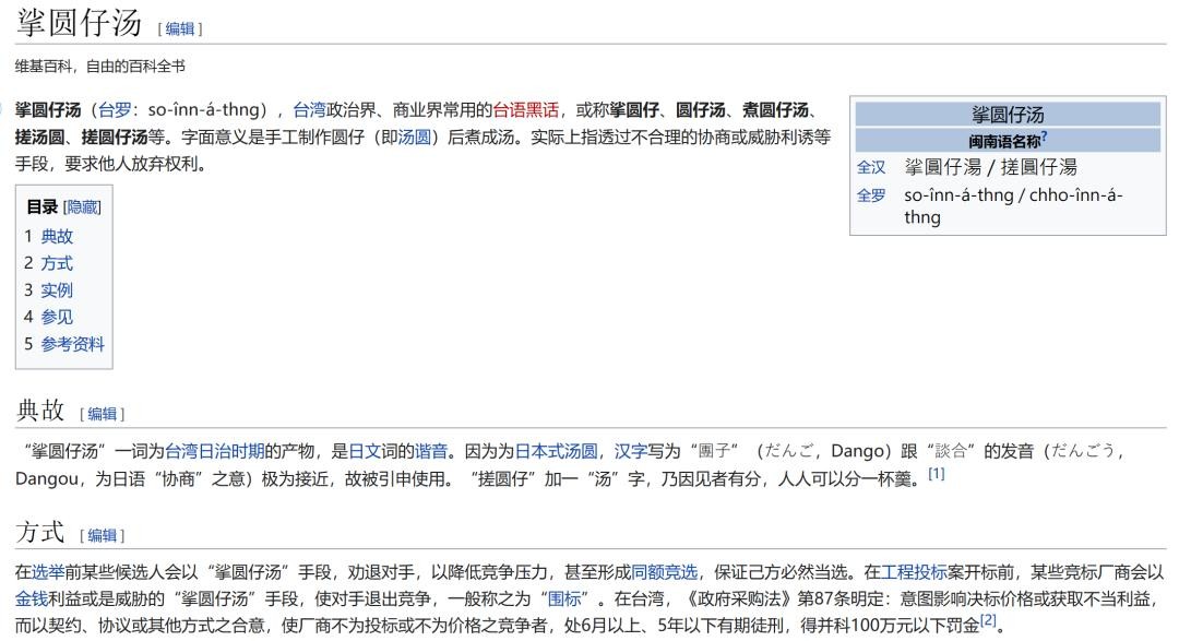 周朝先说的大家一起来“搓圆仔汤”,是闽南俚语,意思就是在投标时合伙抬价,坑政府的钱,也称“食饼仔”。