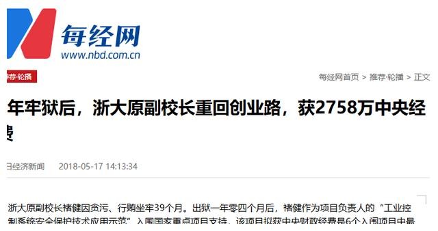 褚健:坐了3年牢,出狱后获得国家2758万项目支持