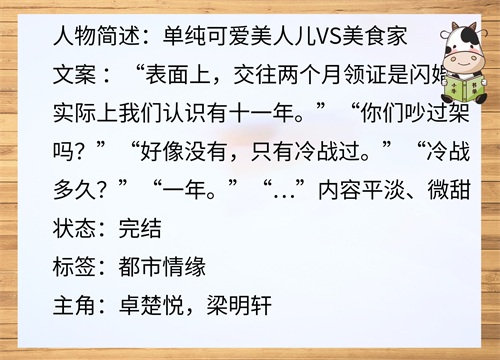 年龄差16岁。女主卓楚悦,单纯可爱美人儿,美术生。男主梁明轩,彬彬有礼,进退有度。非常喜欢美食,是个美食家,也是个成功商人。