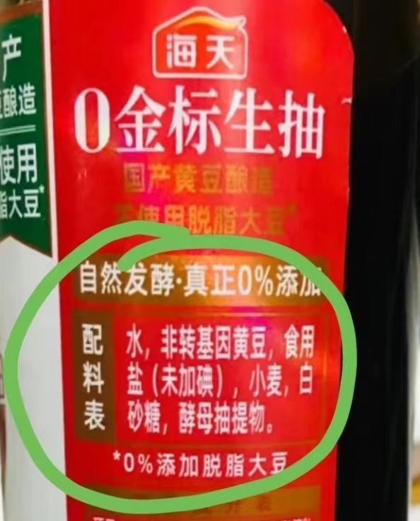 无独有偶,网友晒出的配料表中各类添加剂也被扒得底朝天。“苯甲酸钠是一级致癌物”“为什么不用山梨酸钾?”“非转基因脱脂大豆是豆渣”“连豆子也双标?”……诸多问题席卷而来,海天酱油再陷风波。