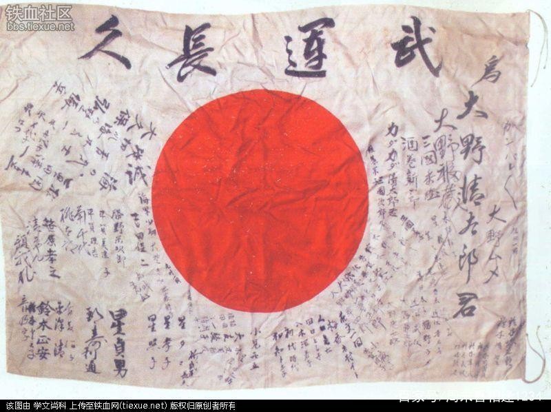 在二战时期,日军还有一种叫做“武运旗”的旗子,我们在抗日的影视剧里,经常看到日军将领在其办公室或作战室里的墙壁上,张挂这日本国旗,旗子正上方写有“武运长久”4个大字,其他空白处写满着亲友、同僚的名字,这就是所谓的“武运旗”,二战时,日军携带了大量不同规格的太阳旗,旗上有出征亲友的签名祈祷“武运长久”。日军士兵将之作为护身符祈求好运和宣扬“皇威”。