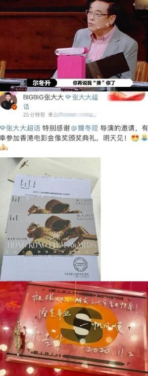 当时,评委尔冬升最初对他的演技提出了批评,直言他的表演存在一些问题。后来尔冬升的态度却发生了大转弯,不仅和张大大频繁互动,还邀请他参加金像奖颁奖典礼,甚至送给他签名 S 卡和金像奖女神徽章。这一转变让不少人感到惊讶,也让张大大再次成为了话题中心。