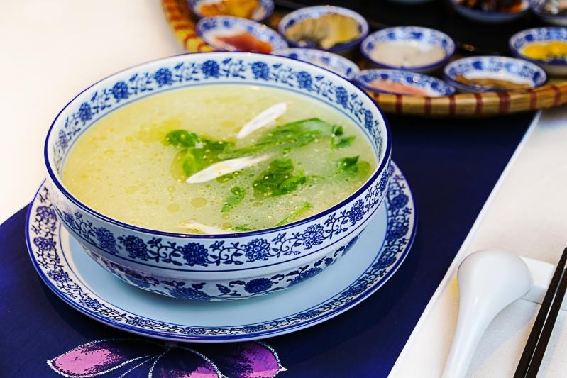 酒店过桥米线就餐处在天品园,环境不错,过桥米线的餐具都是用传统的青花瓷样式的。他家的汤浓淡相宜、鲜香适度,配菜也不错,反正就是还挺有传统过桥米线风韵啦。