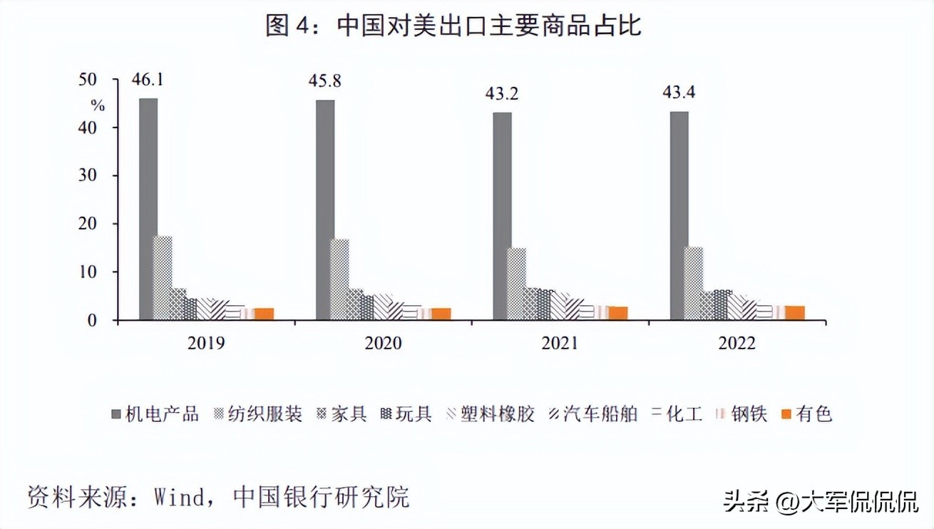 其中以机电产品为主,每年都能占比40%以上。