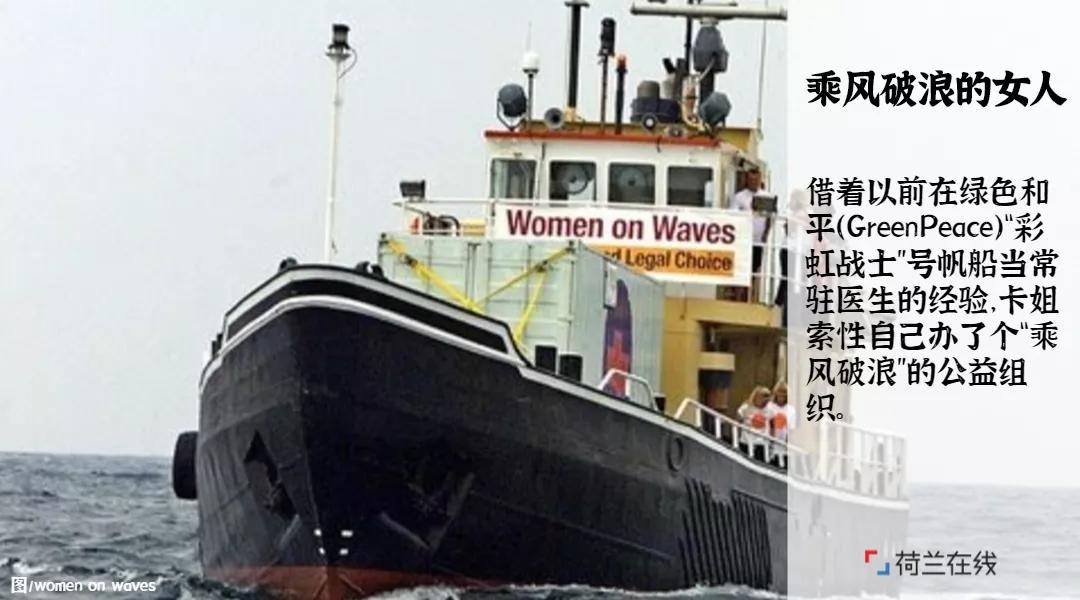 (由于国际法“漏洞”,对于行驶于公海的船只,只要悬挂的是荷兰国旗,就服从国旗所在国“荷兰”的法律管辖,而荷兰的堕胎法律相对宽松。)