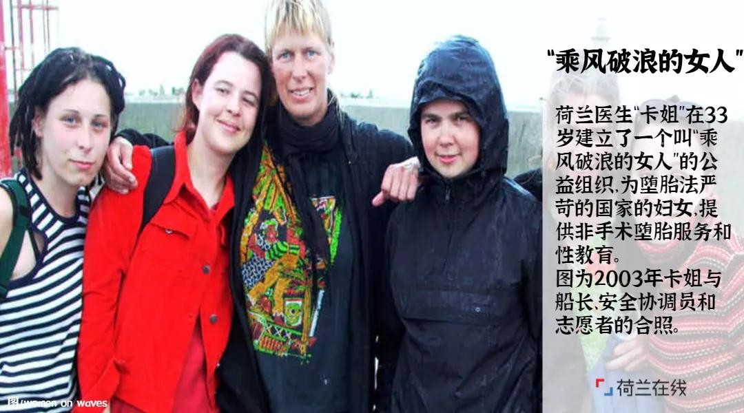 她是54岁的荷兰医生“卡姐”。(“丽贝卡·贡珀特”Rebecca Gomperts,下图左一)