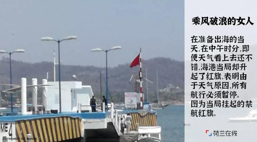 4月21日,在准备出海的当天,在中午时分,即便天气看上去还不错,海港当局却升起了红旗,表明由于天气原因,所有航行必须暂停。当时,至少有5名警察守卫着海港的进出口。