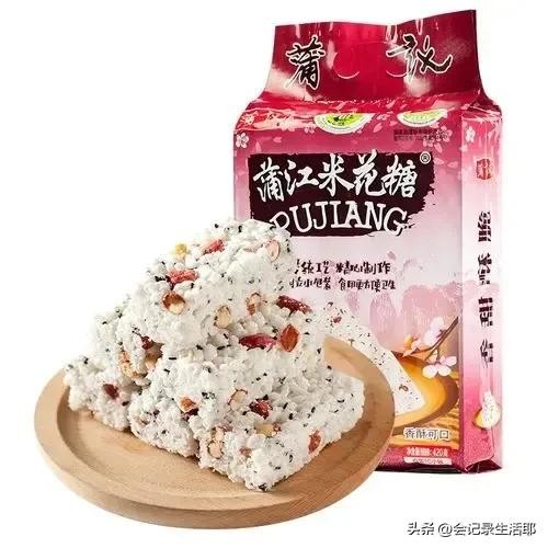 蒲江米花糖,四川省蒲江县特产,中国国家地理标志产品。米花糖块形完整、不松散、大小均匀、洁白晶亮、香味纯正、香甜松脆,入口化渣。
