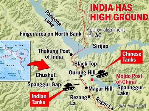 中国军队居高临下,属于俯冲态势,印度军队在下,属于仰攻,因此,中国军队的驻守地易守难攻,印度军队处于易攻难守,中国军队占据地形优势。