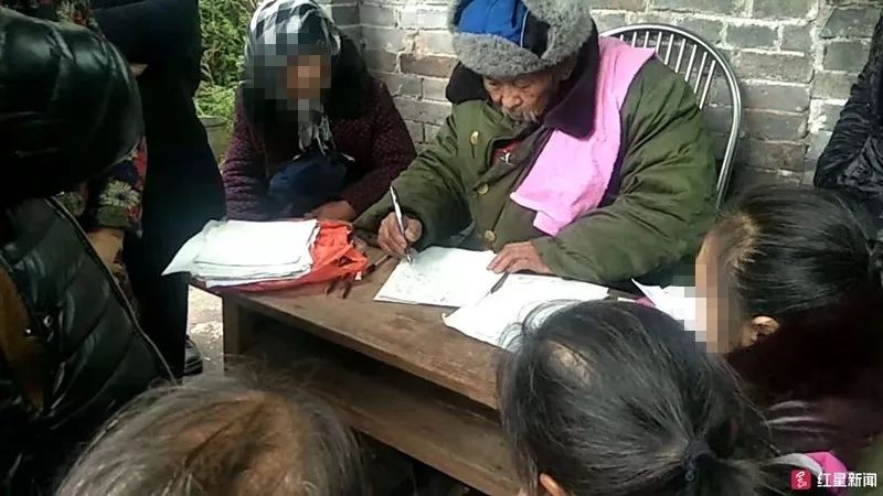 11月29日,记者来到南岳镇天宝村,在一个院子里,有10来人在院坝里围着火盆烤火,在青砖瓦的屋檐下,还有一帮男男女女围着一位白胡子老人。
