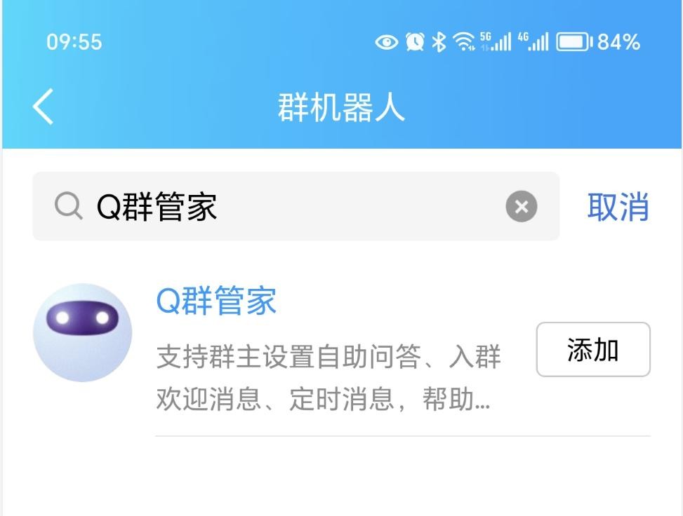 第四步:点击“添加”按钮,添加Q群管家,然后就可以看到已经邀请Q群管家加入了群聊。