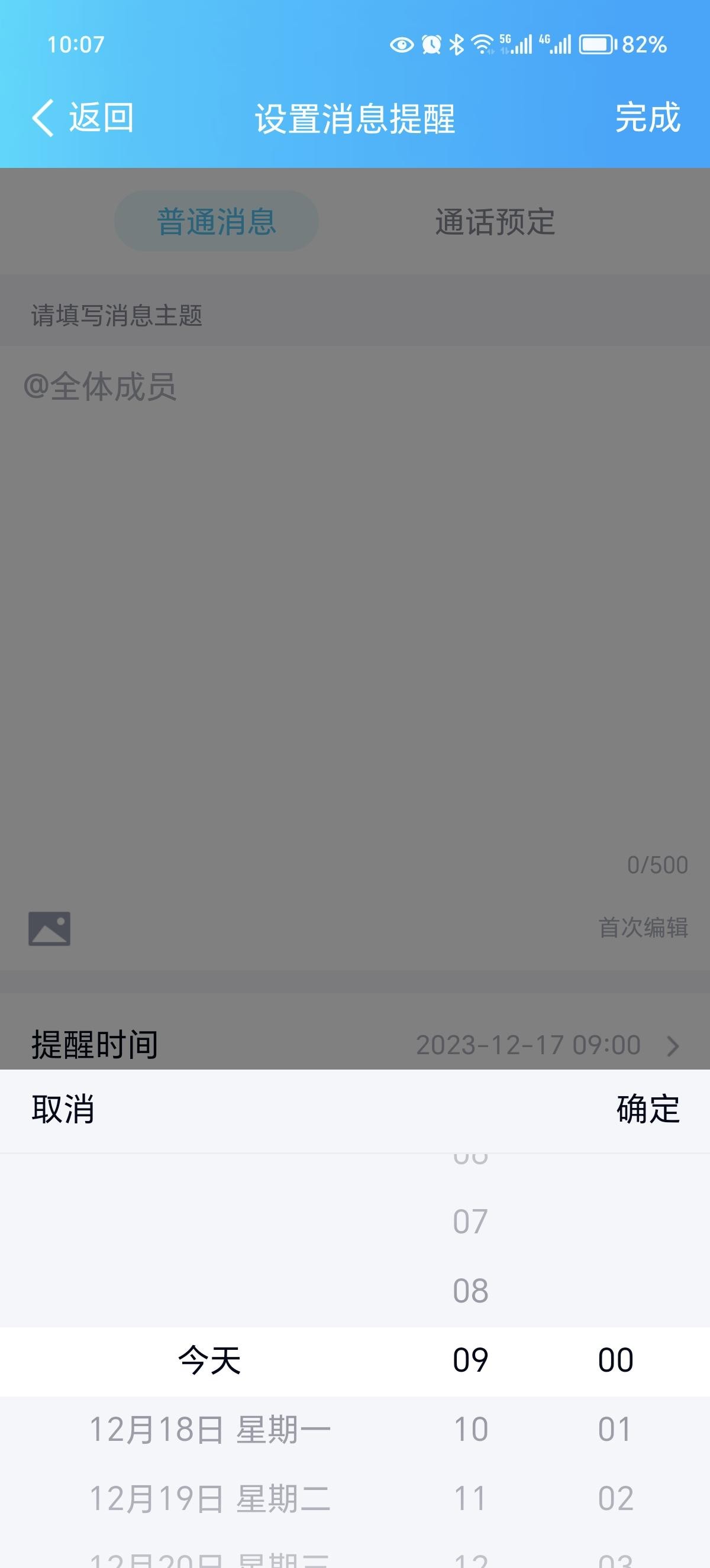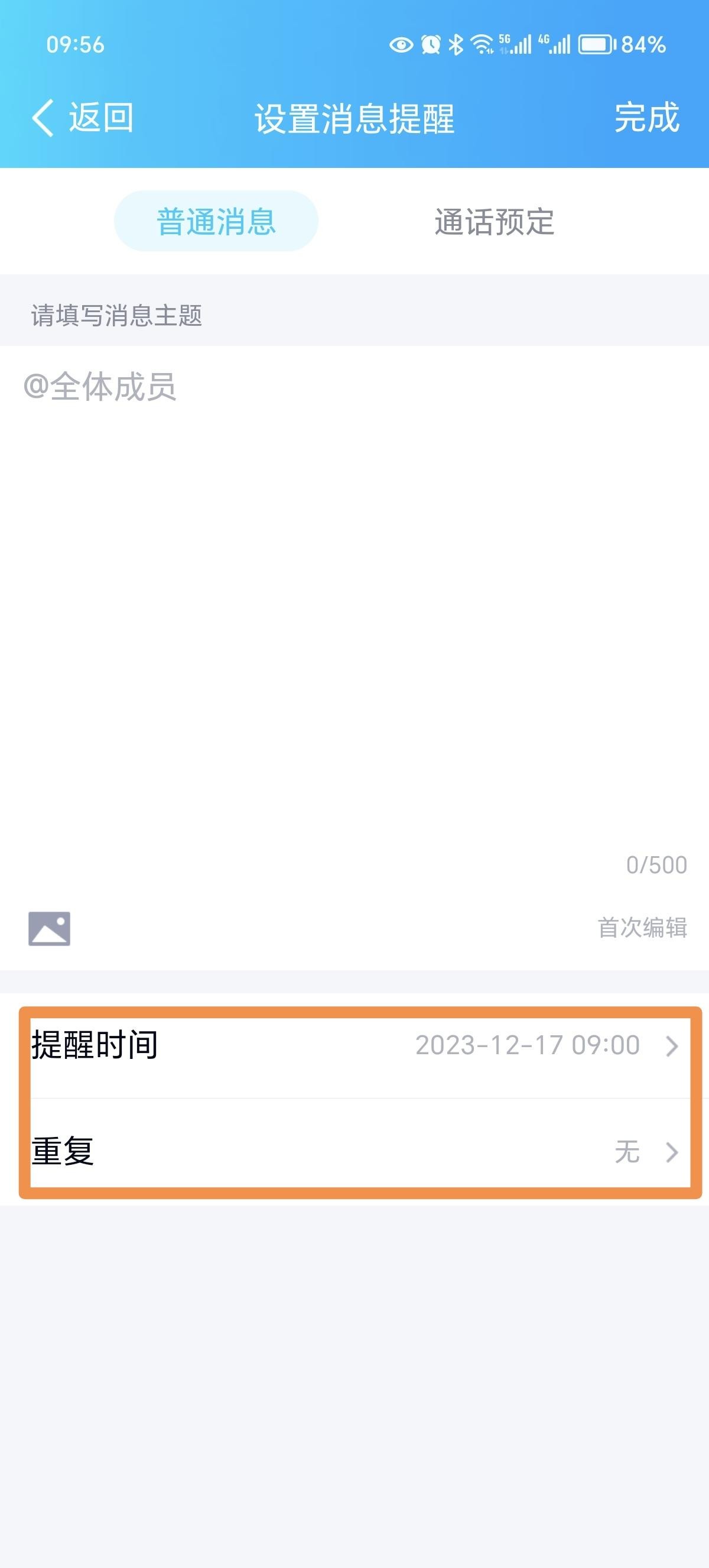 第八步:在“设置消息提醒”页面可以填写消息主题和内容,设置提醒时间和提醒频率。
