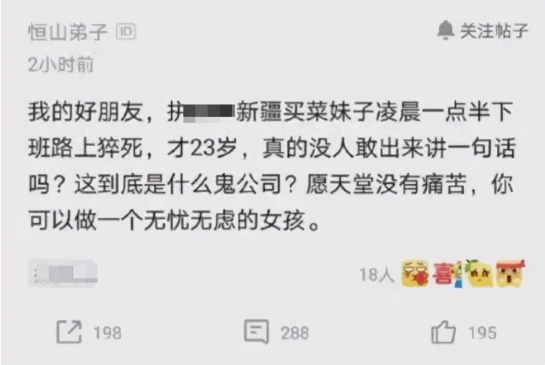 2020年12月29日,一位互联网公司的女员工在连续加班后,回家路上猝死,年仅23岁。