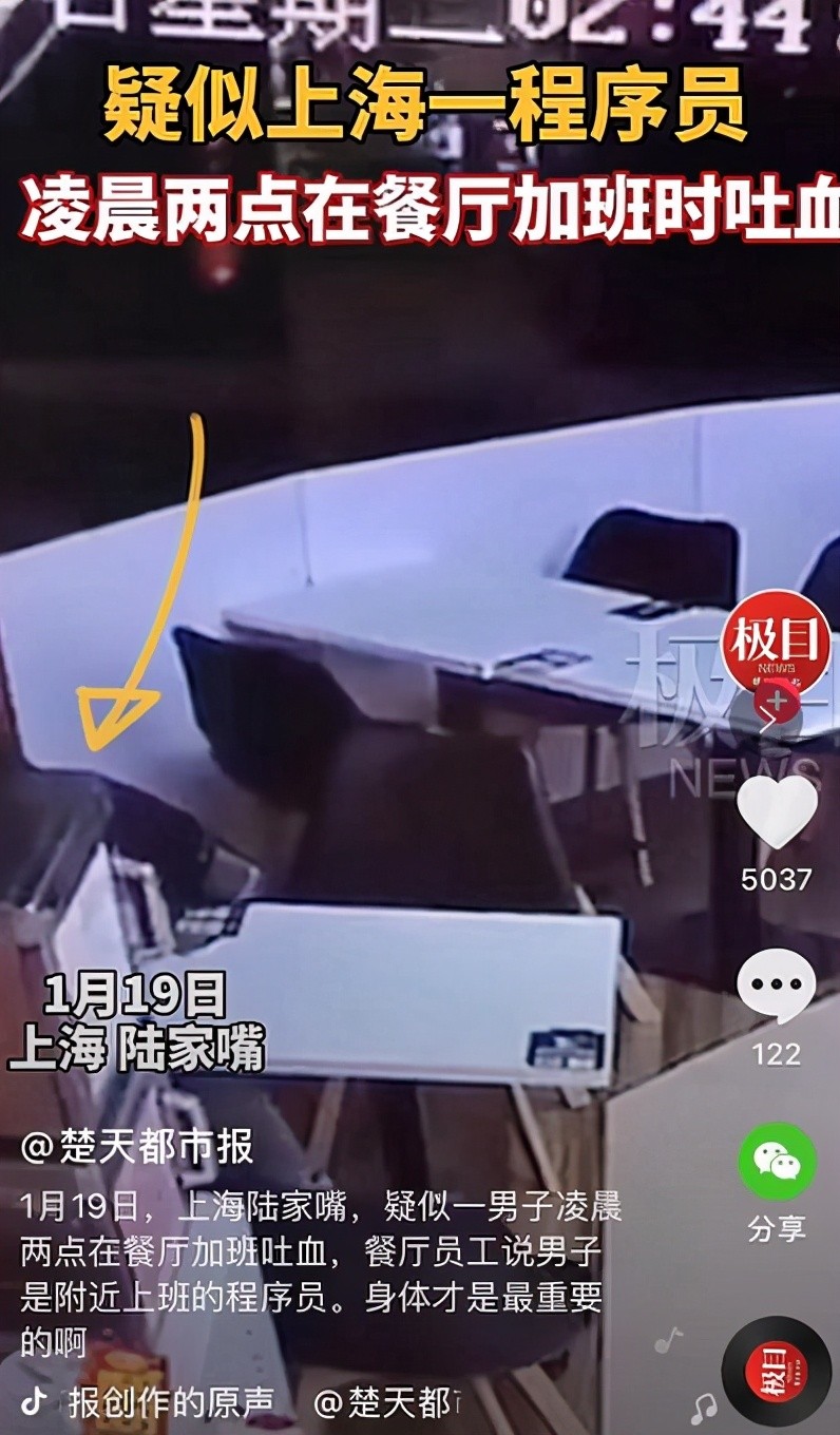 2021年1月19日,上海一程序员凌晨在餐厅加班到吐血......