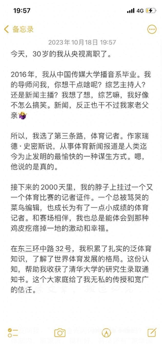 水均益女儿水亦诗微博发长文宣布从央视体育频道离职