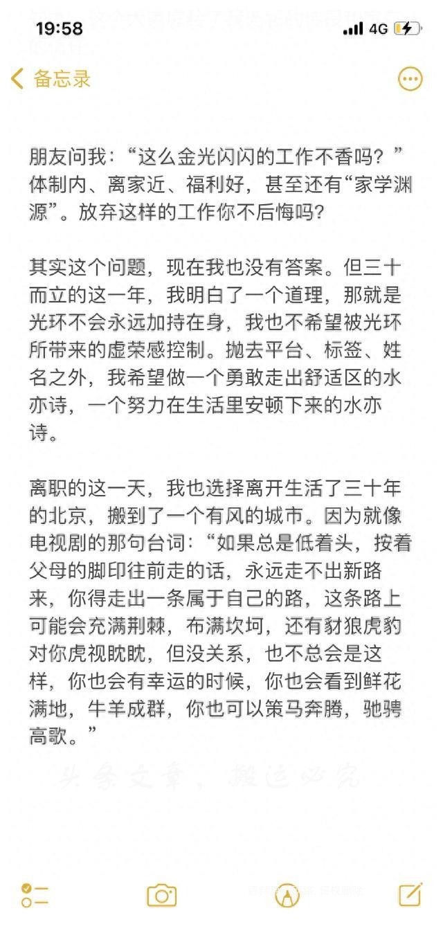 有人支持她的个人选择,认为每个人都有追求自己梦想的权利。还有人对水亦诗表达了遗憾,希望她能够继续在主持领域取得更好的发展。