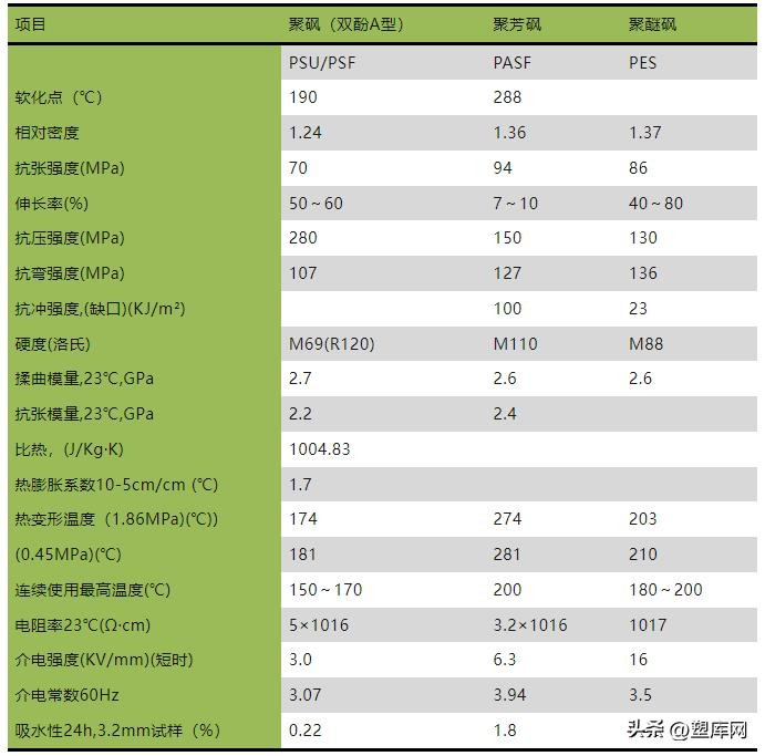 表1:双酚A型聚砜、聚芳砜、聚醚砜的性能比较
