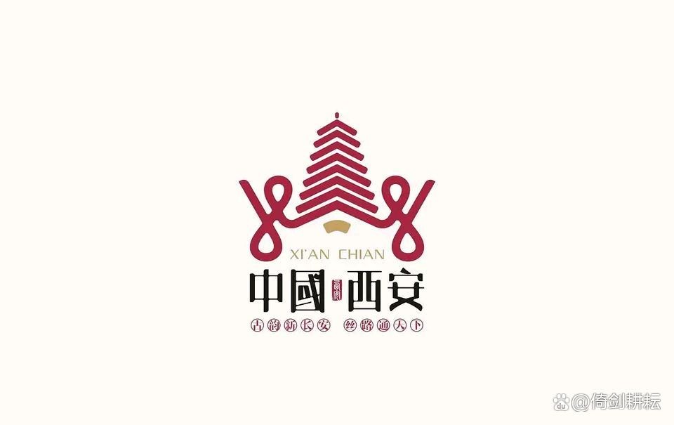 西安LOGO,外形似中国结,以著名的大雁塔为元素,代表西安千年古都、历史悠久。丝带代表“丝绸之路”的文化厚重。彰显着西安历史人文厚重,热情包容,具有国际化都市的城市精神。