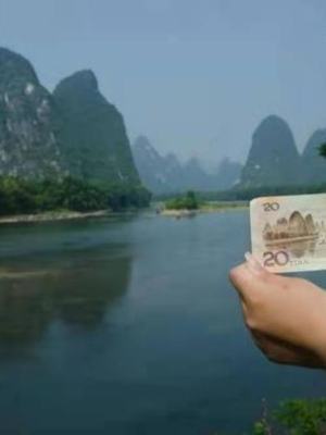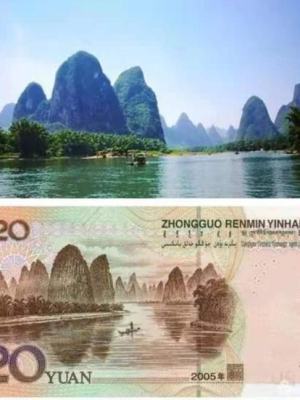 谁曾想就在他低首弄船间,忽然有个摄影师从河岸经过,人民币背面图案对应的景点,看到这一人一舟,群山江景,不由想起柳宗元的那两句诗: