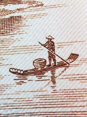 如果手中有这张人民币的朋友不妨拿出来看一看,在它的背面,也就是桂林山水图案的正中,有一个孤舟蓑笠的渔夫,正手执长蒿缓缓向我们十元地名驶来,为这幅静谧美好的山水画作增添了一抹灵动明快,50人民币背面图案是哪里的景点。